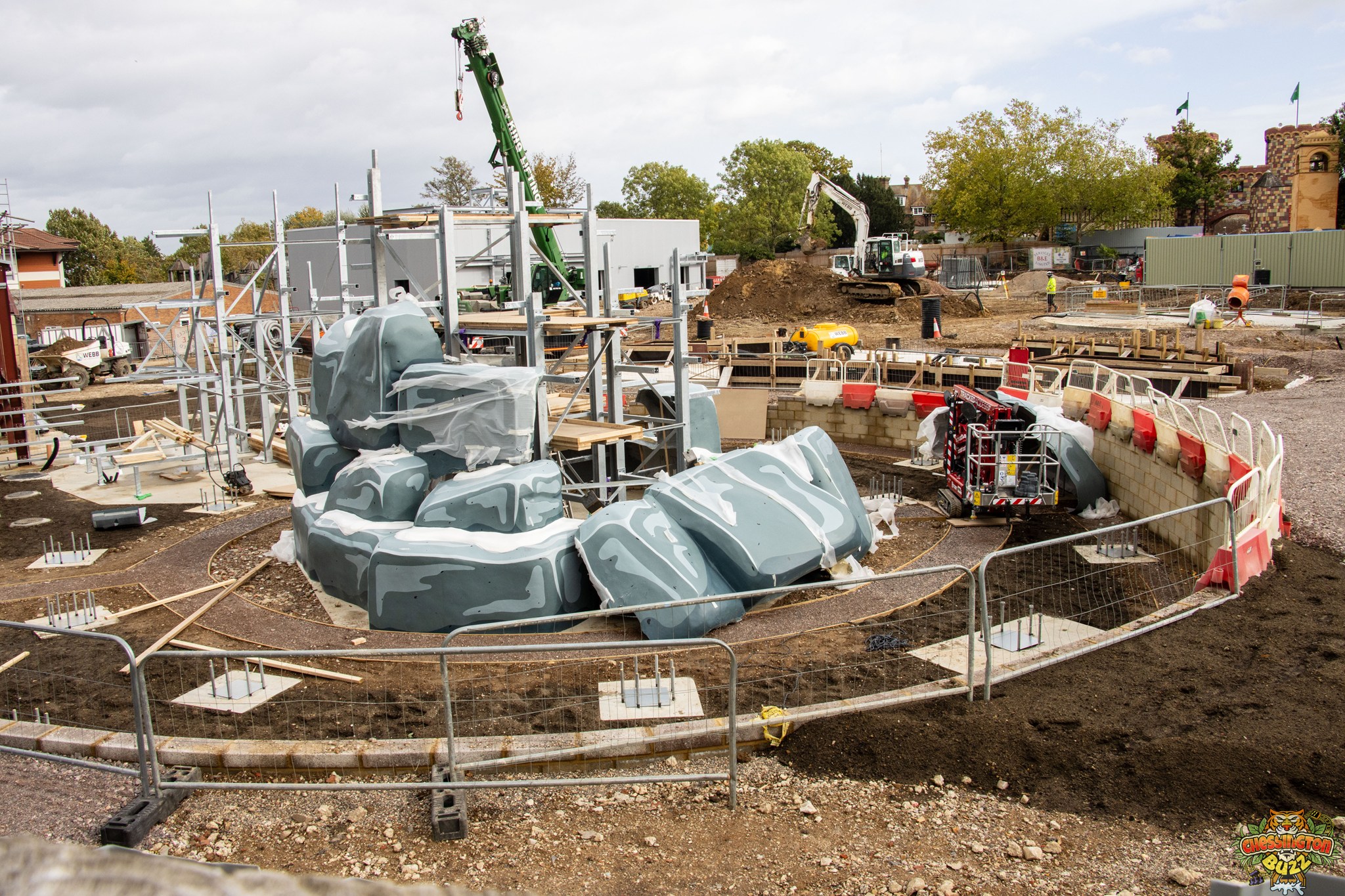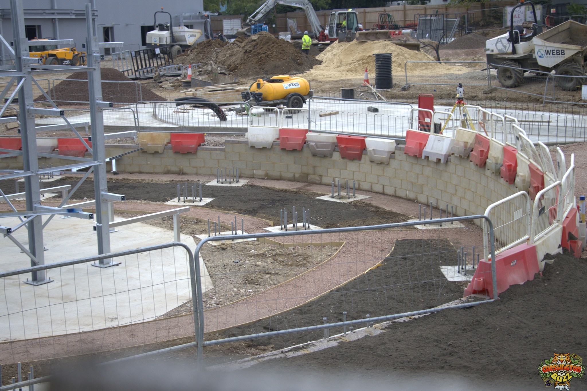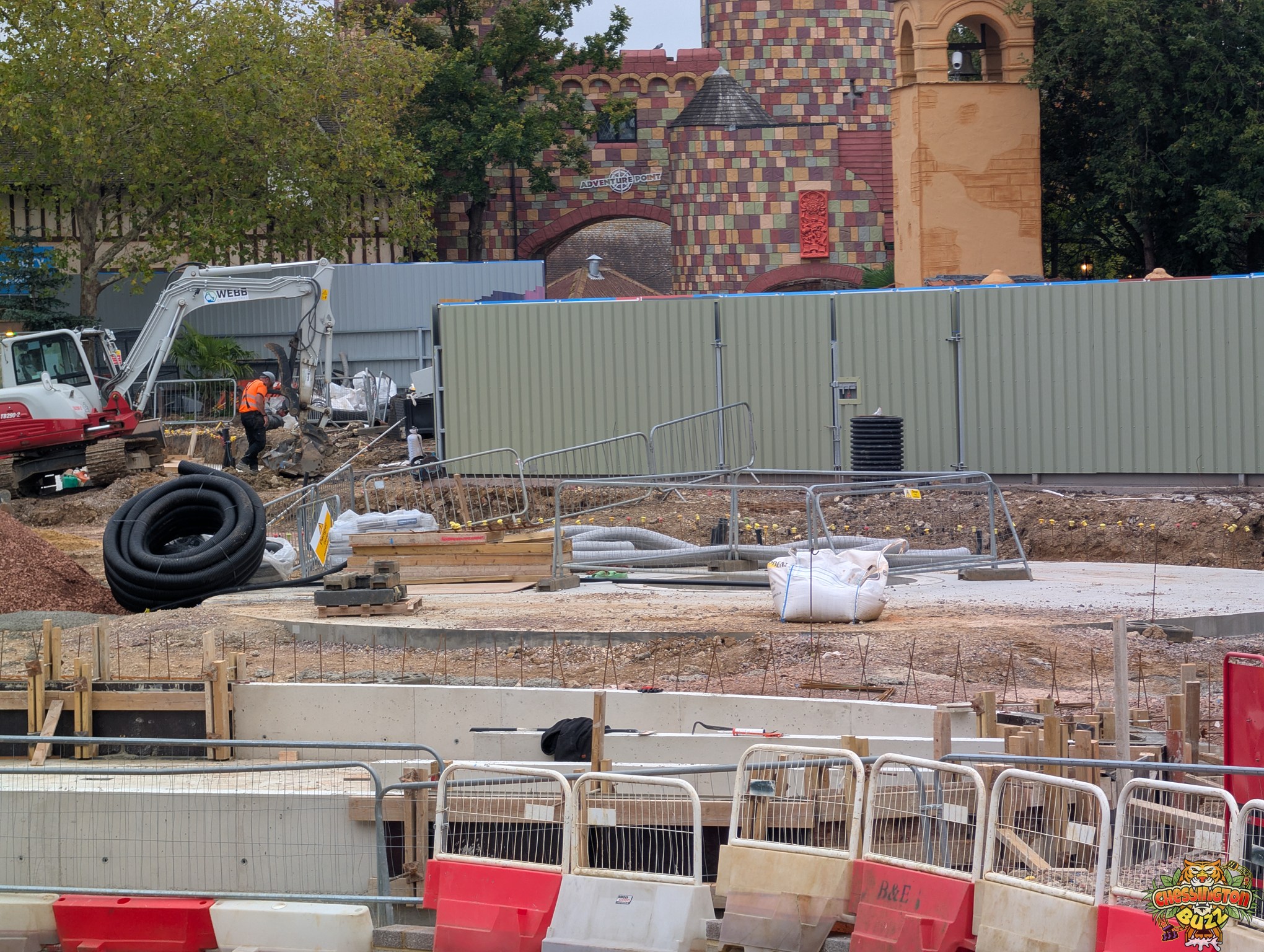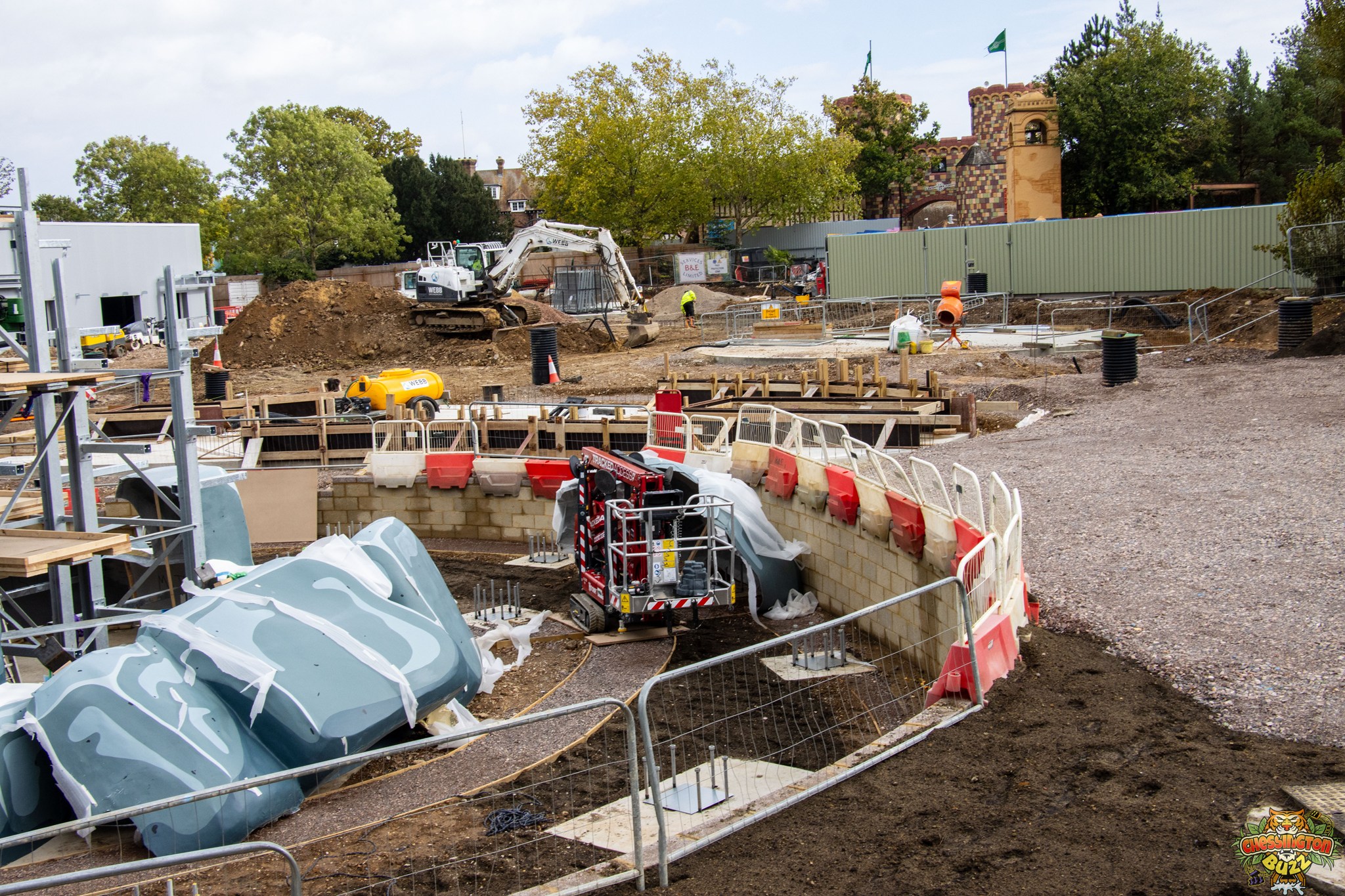 Groundworks also continue across the site, with a retaining wall now under construction near the upcoming Zierer roller coaster. This feature levels the land around the coaster, positioning the ride slightly below guest eyeline. This clever design choice should provide far more impressive visuals of the coaster in motion once completed.