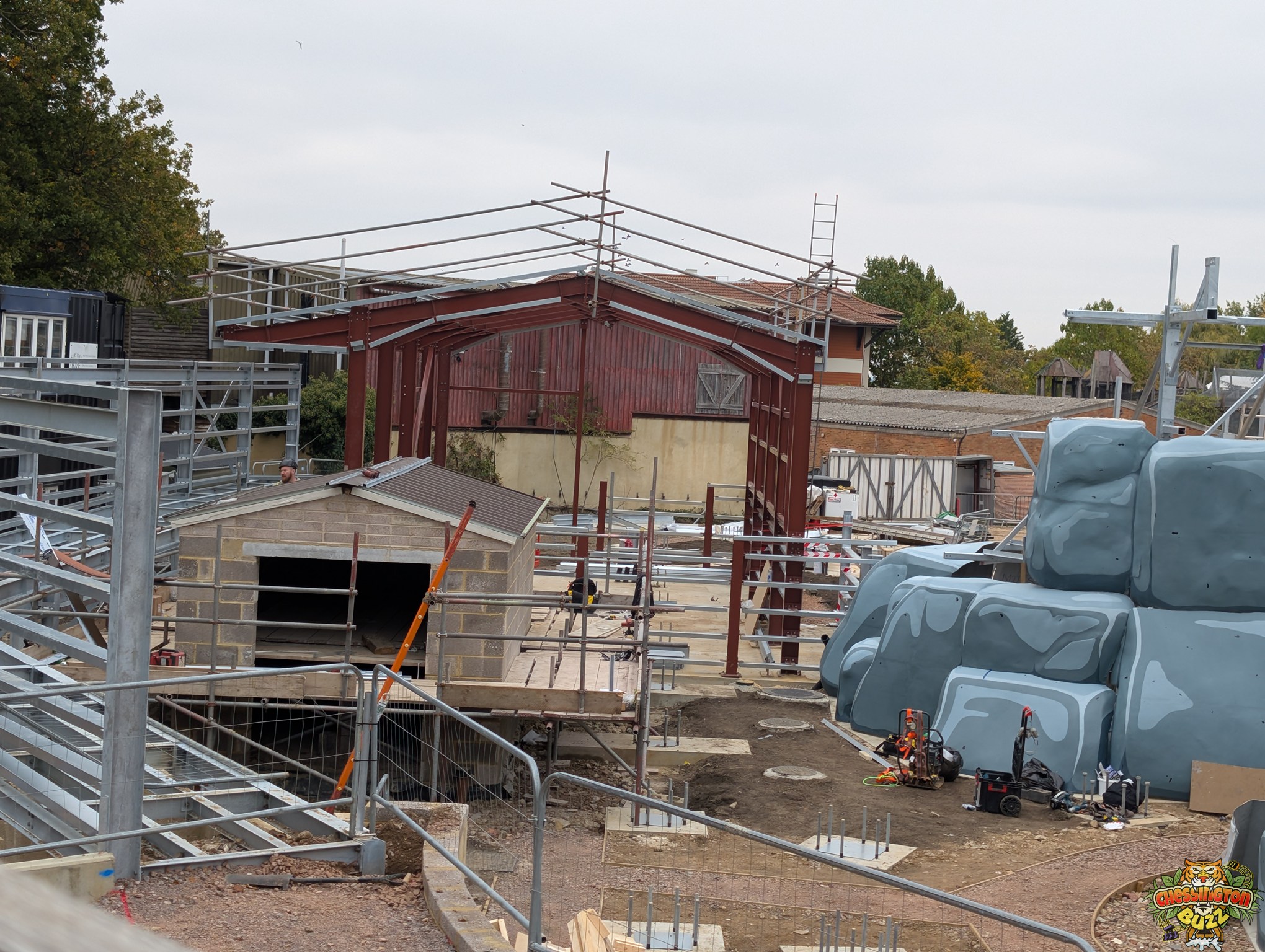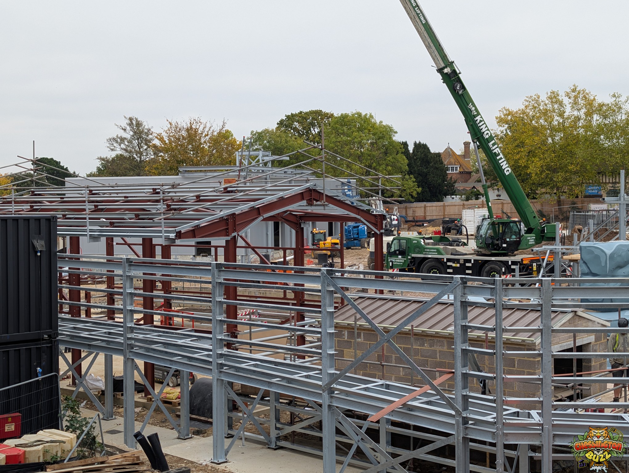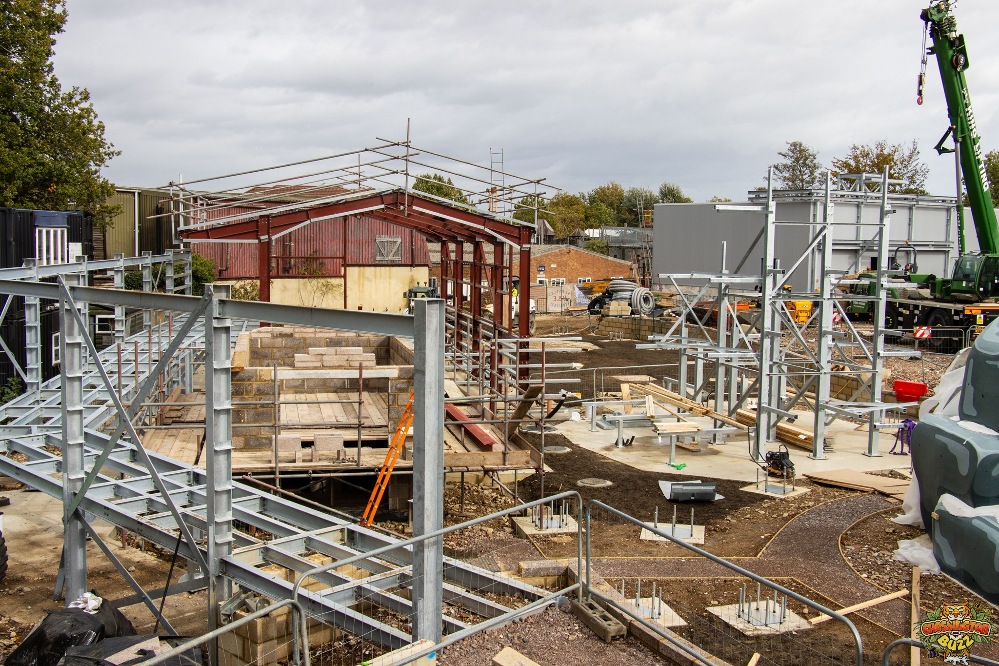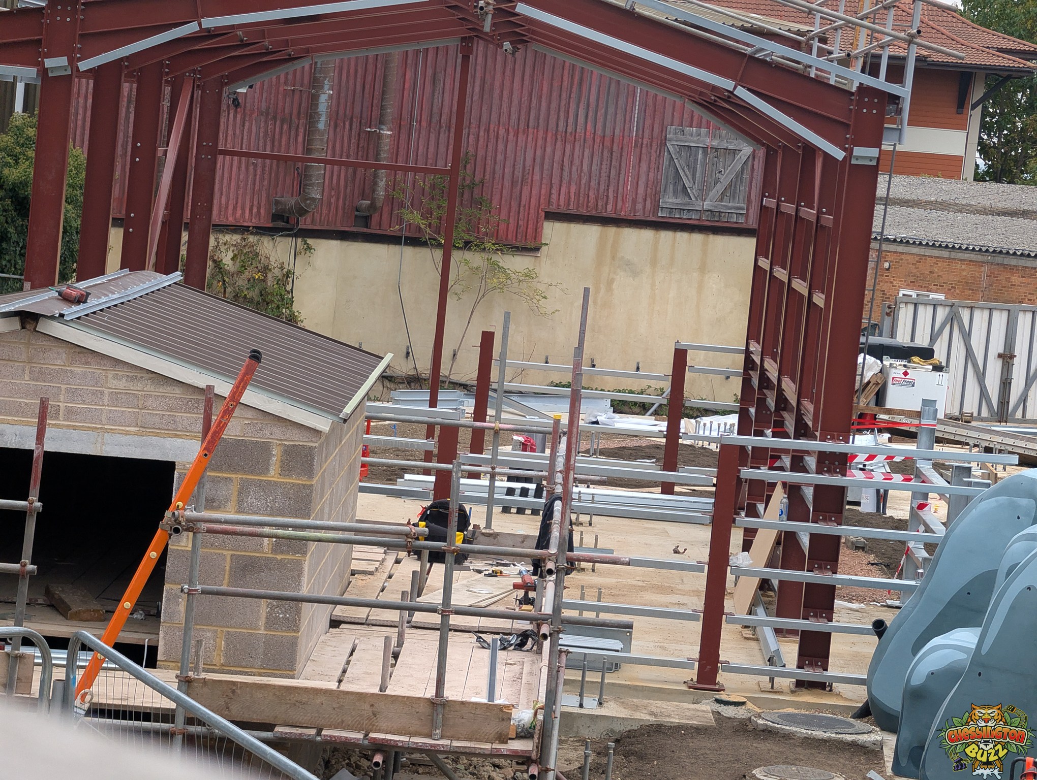 The transformation of Project Play at Chessington World of Adventures is gathering pace. With major visible changes now taking shape on site. The most striking development this week is the steel framework for the new retail, toilets, and meet-and-greet building rising rapidly into place. This key structure will form the backbone of the new land. Cleverly screening the service area from guest view and creating a more immersive environment.