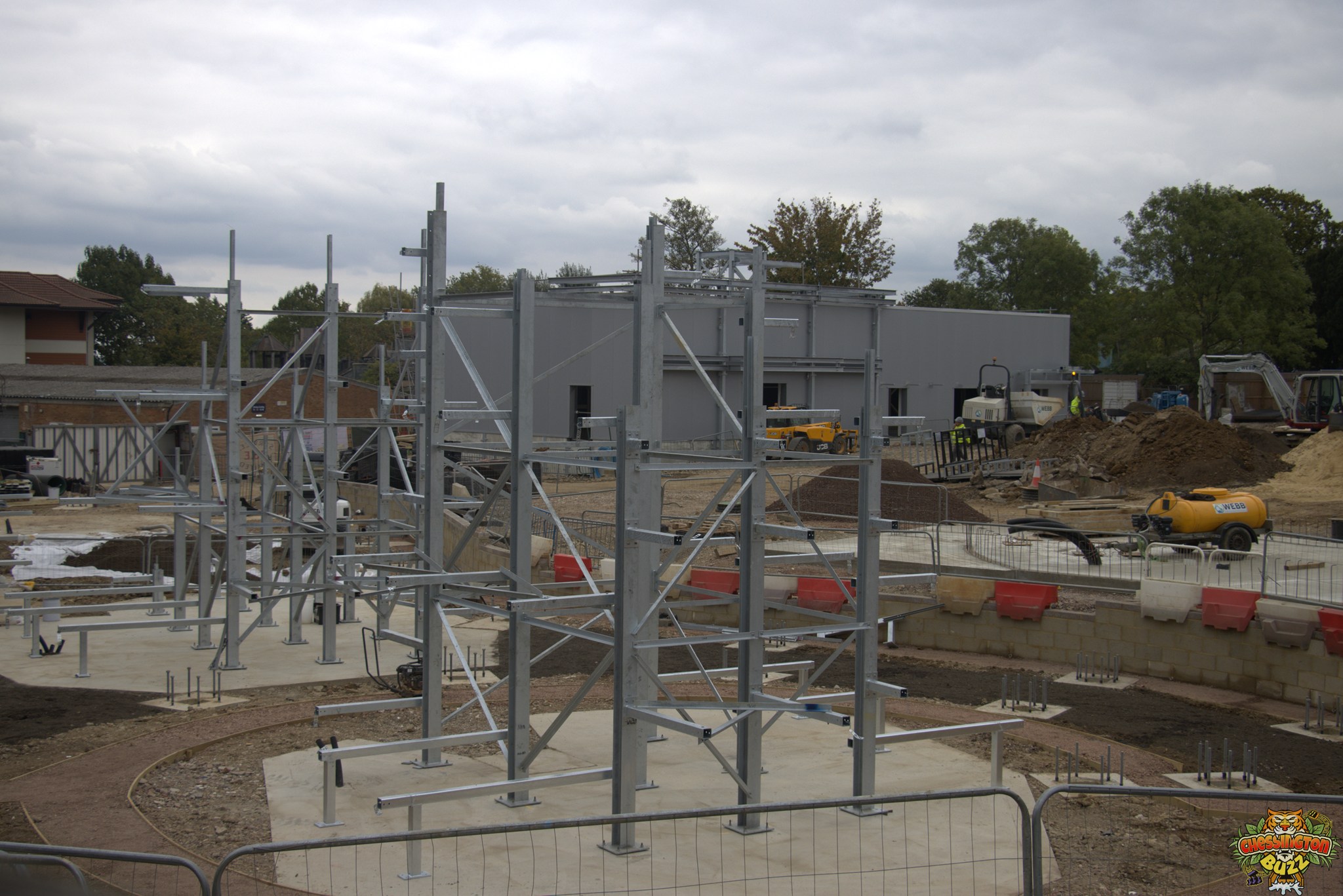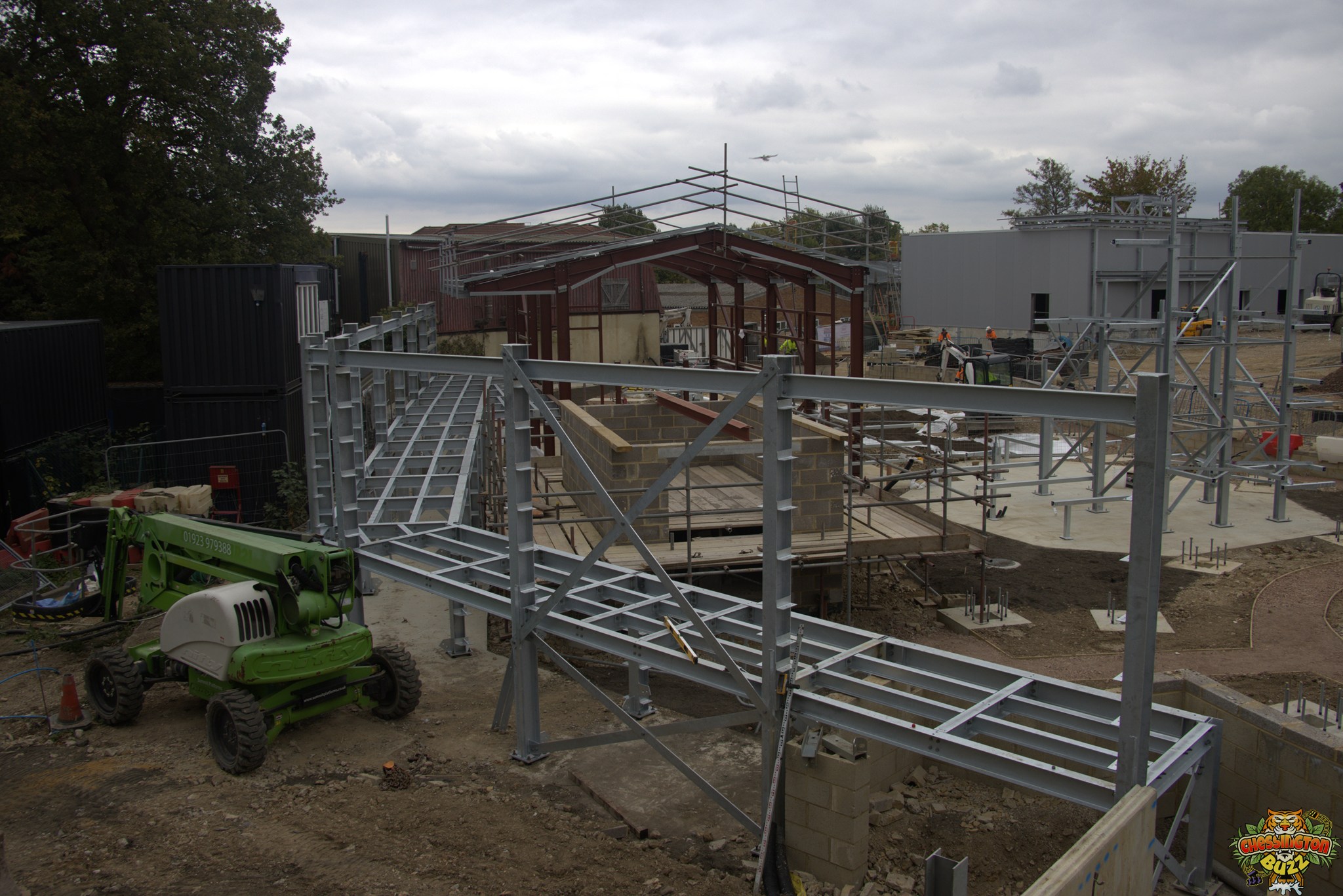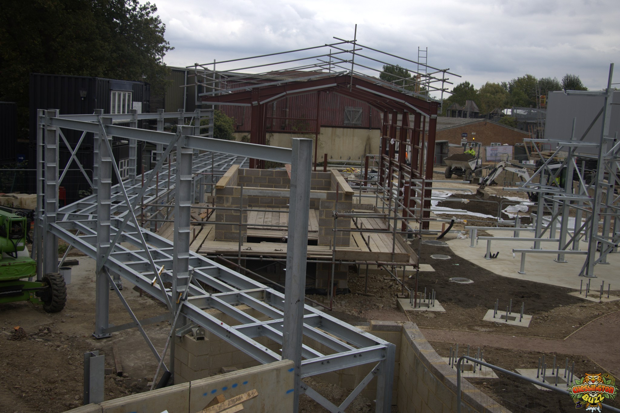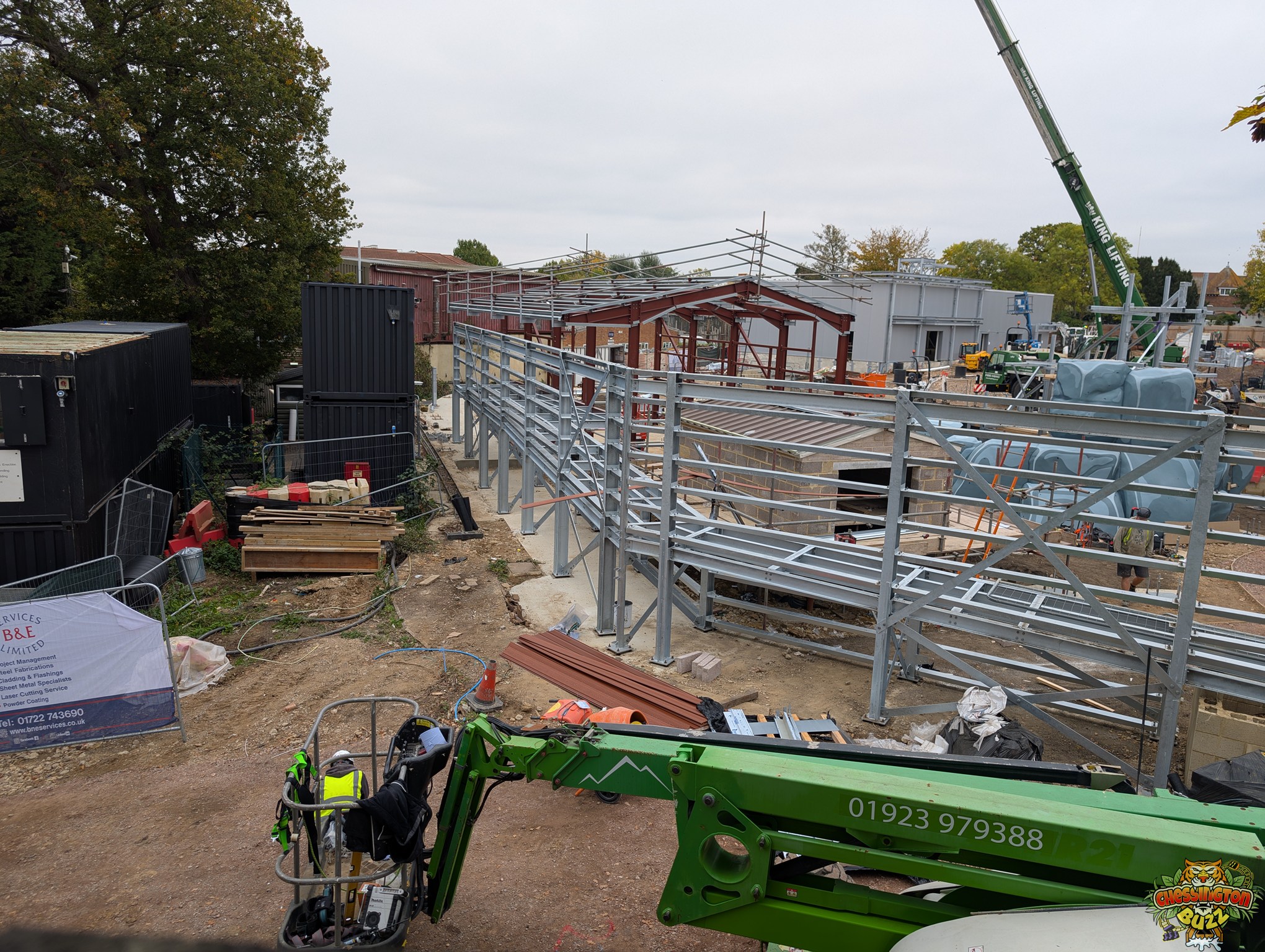 The transformation of Project Play at Chessington World of Adventures is gathering pace. With major visible changes now taking shape on site. The most striking development this week is the steel framework for the new retail, toilets, and meet-and-greet building rising rapidly into place. This key structure will form the backbone of the new land. Cleverly screening the service area from guest view and creating a more immersive environment.
