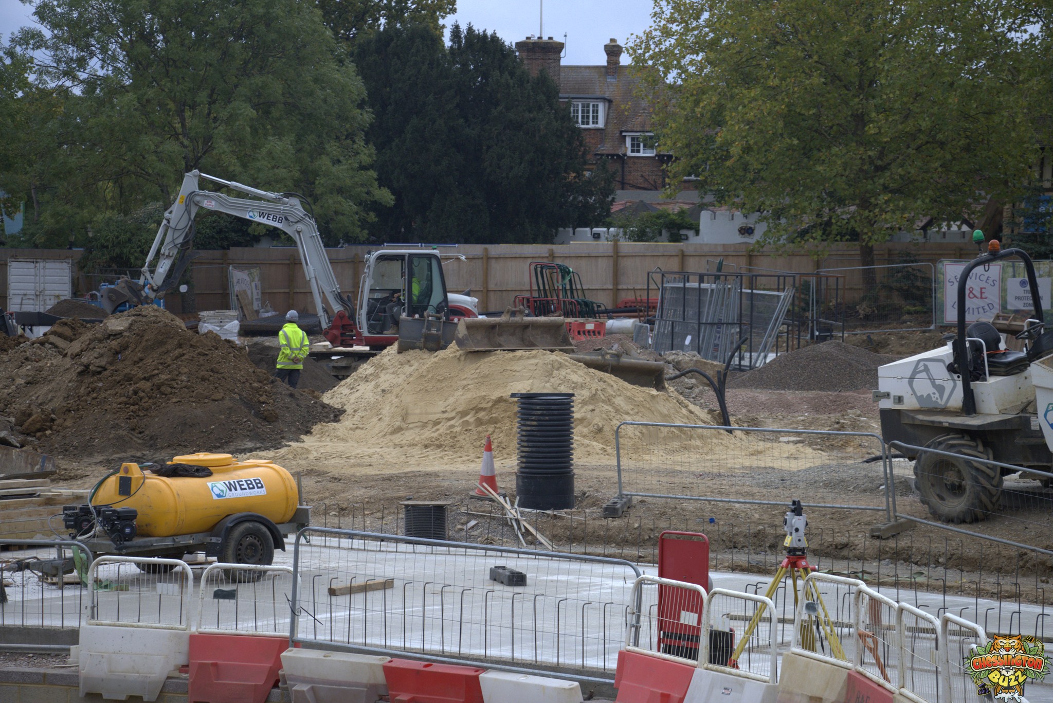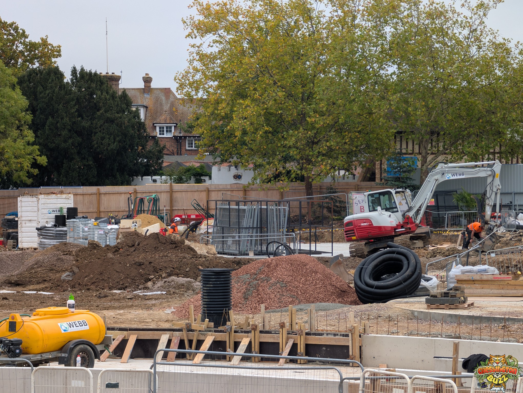 Groundwork also continues in earnest. Crews are busy flattening large sections of the site and laying hardcore, preparing the ground for paths and future queue-lines. This vital stage ensures the area will be ready for the thousands of footsteps it will welcome once complete.