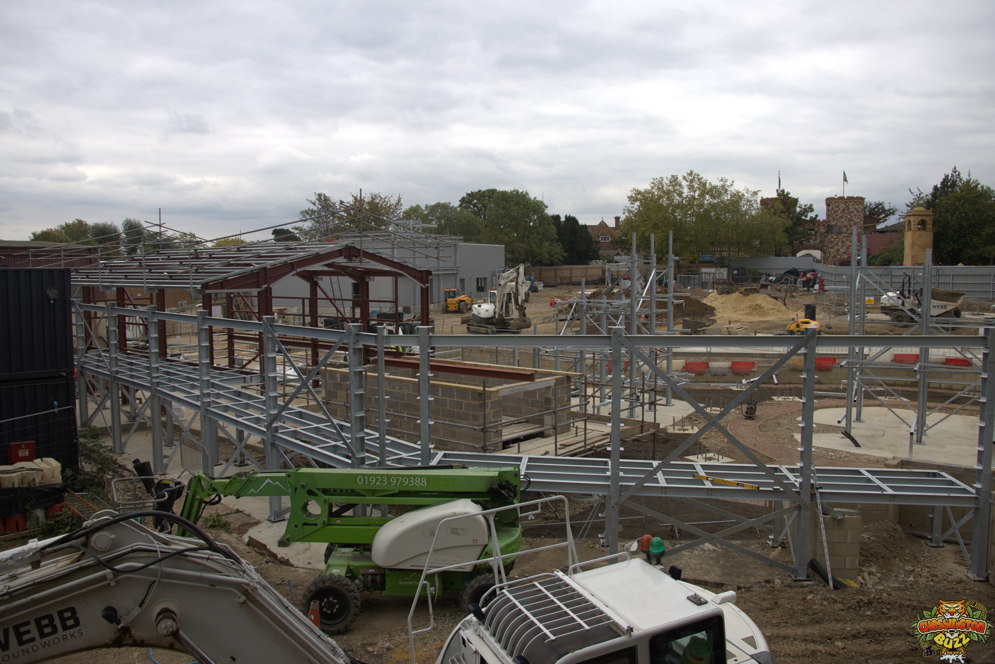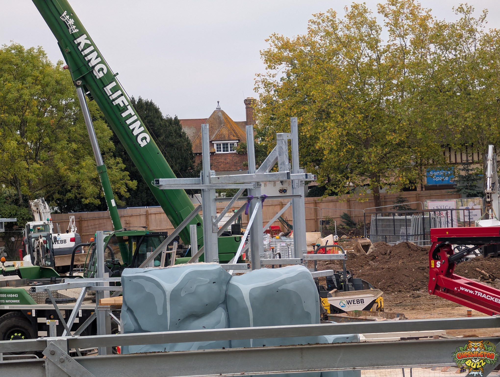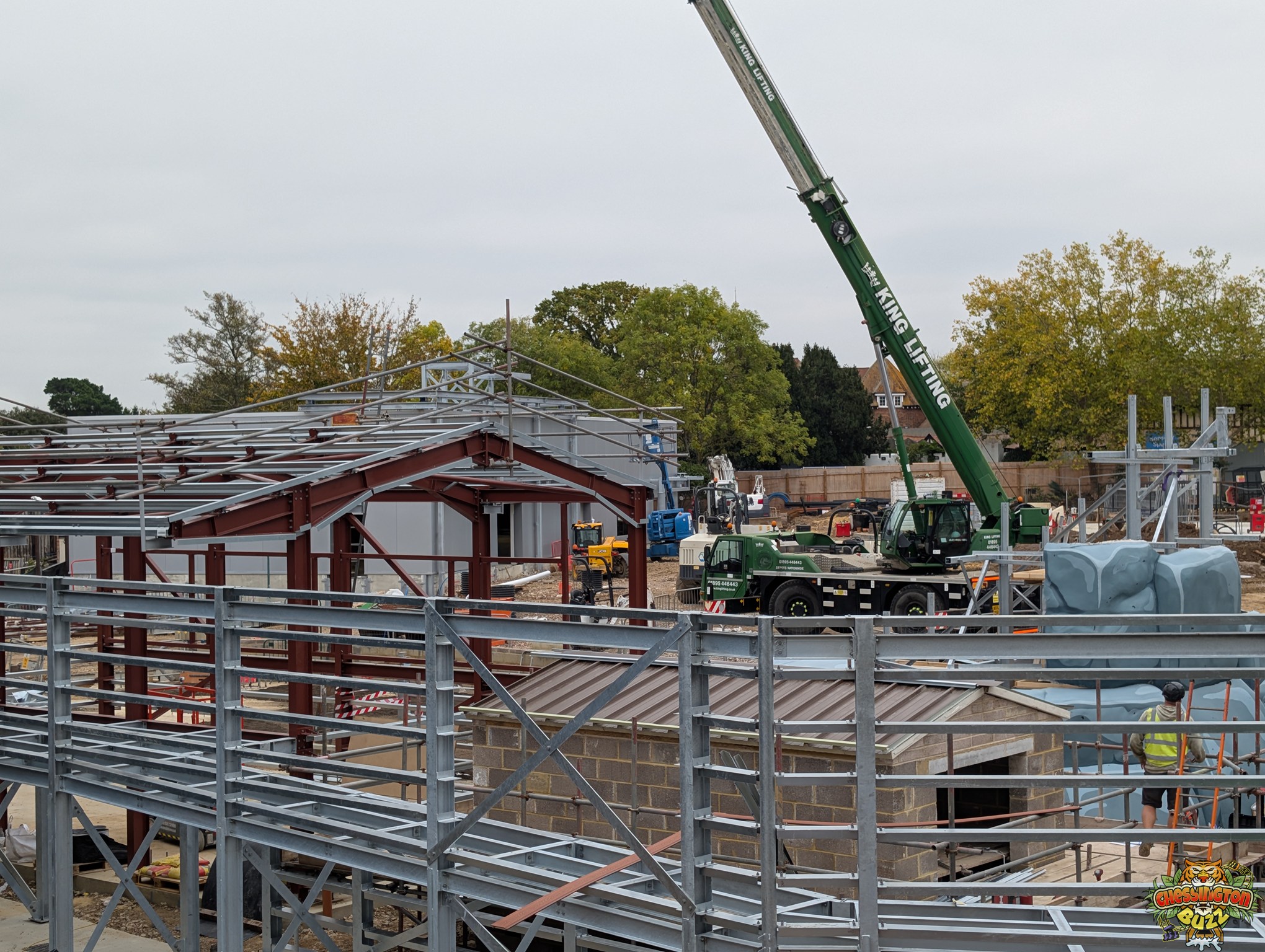 Project Play continues to move forward at pace, and this week marks another exciting milestone. The first sections of steel framework for theming elements have started to rise around the site. With each new beam installed, the future look and feel of this new land is beginning to take shape.